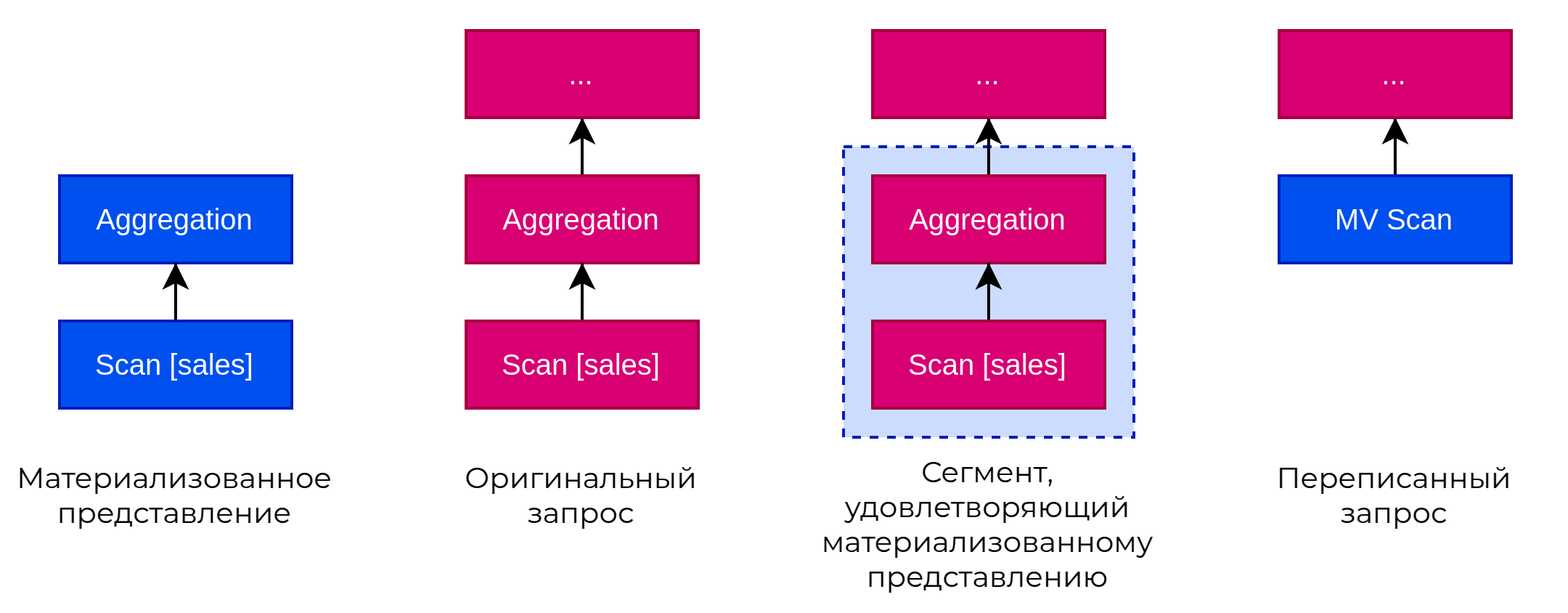 Автоматическое переписывание запросов на материализованные представления может быть использовано для следующих сценариев: